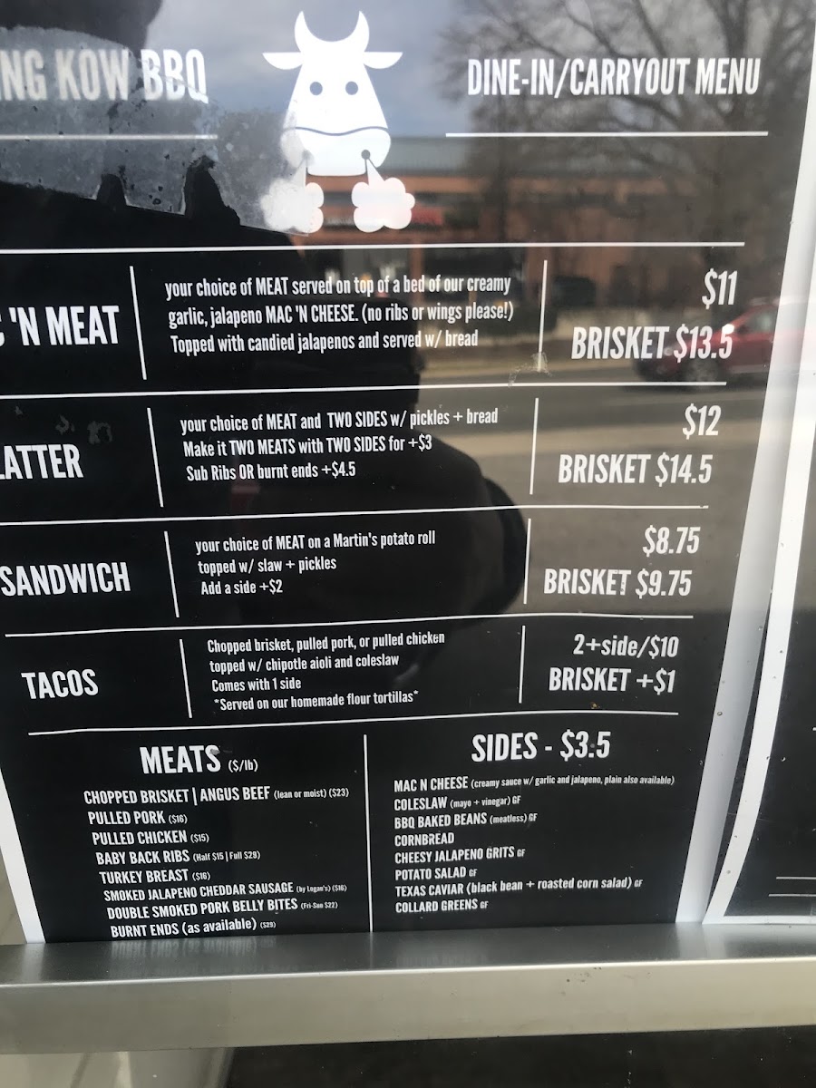Smoking Kow BBQ is a culinary gem located at 3250 Duke St, Alexandria, VA. This vibrant eatery specializes in hearty, smokey American BBQ, bringing Texas-style flavors to the DMV. Their menu boasts succulent meat options like brisket, pulled pork, and BBQ ribs, all cooked to perfection. Each plate is a testament to their commitment to quality, with standout dishes praised for their moisture and flavor.
